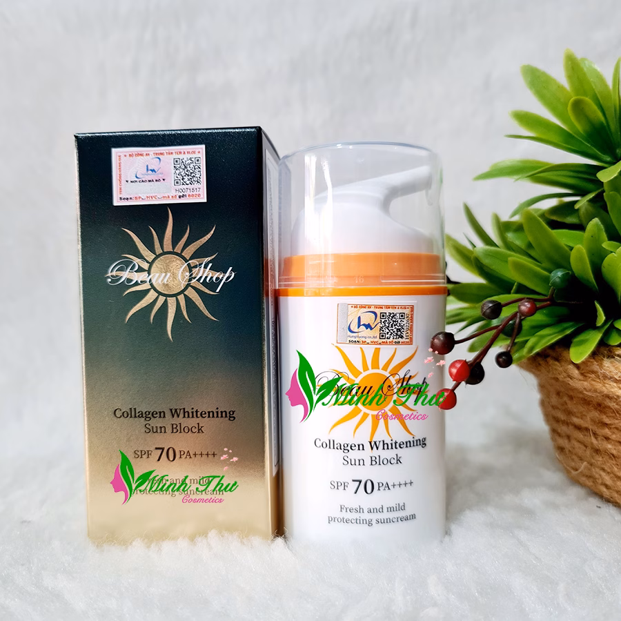 Trên thị trường hiện nay có rất nhiều loại kem chống nắng với các công dụng khác nhau. Kem chống nắng Collagen BeauShop 70Pa++ là một sản phẩm đến từ Hàn Quốc, được biết đến với khả năng bảo vệ da toàn diện trước tia UV và ánh sáng xanh.