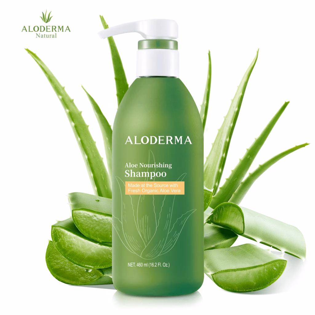 Một trong những sản phẩm dầu gội lô hội được nhiều người tin dùng hiện nay là ALODERMA 460ml. Sản phẩm này không chỉ chứa chiết xuất lô hội tự nhiên mà còn bổ sung các thành phần dưỡng chất giúp phục hồi và nuôi dưỡng tóc:
