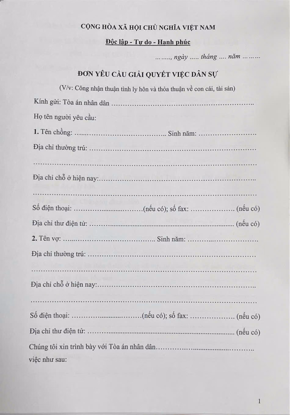 - Đơn ly hôn thuận tình mẫu: Được soạn thảo theo mẫu mới nhất, đảm bảo hợp lệ.