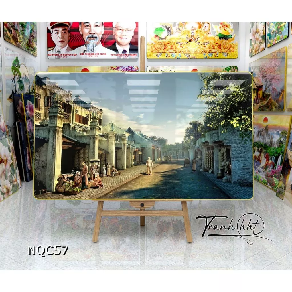🔥 Tranh Hà Nội phố xá tấp nập cổ kính tráng gương treo tường NQC57 đang giảm giá!