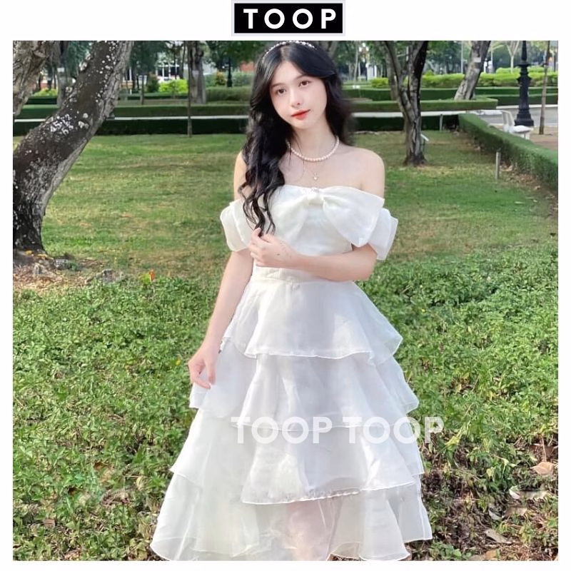 🔥 Đầm dự tiệc công chúa nhiều tầng – Váy trễ vai nơ ngực hai dây có mút thiết kế dáng xoè bồng – TOOP MALL V151 đang giảm giá!