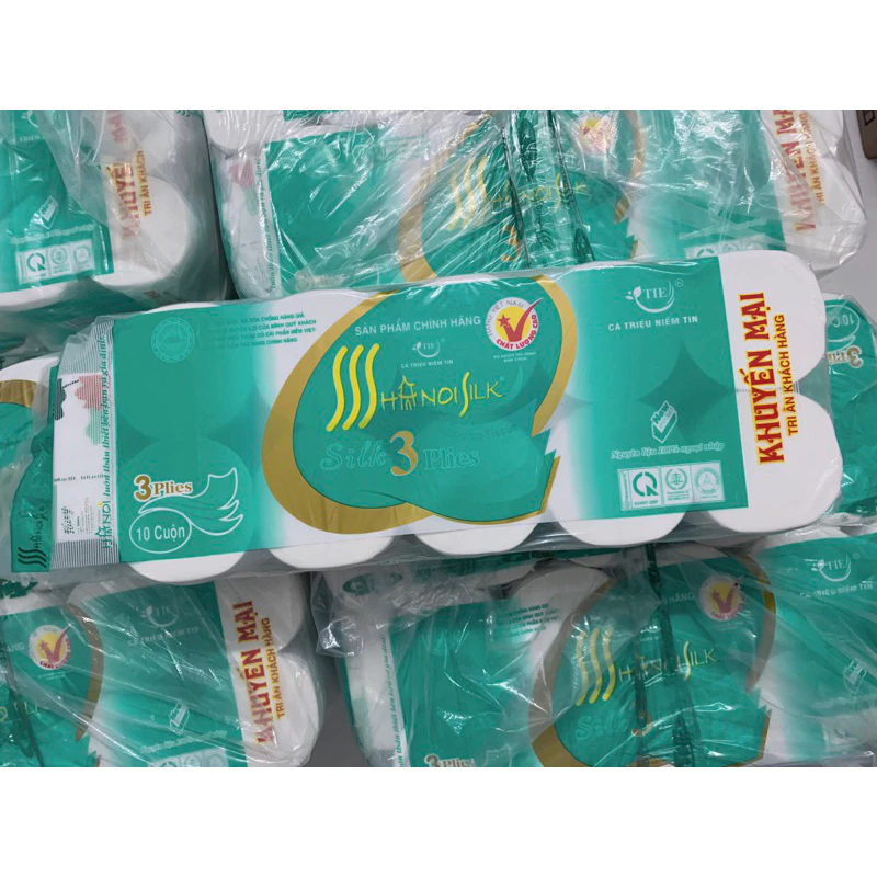 🔥 AMMYFOOD – [tặng 1 bịch giấy rút] Lốc 10 cuộn giấy vệ sinh không lõi Hà Nội Silk đang giảm giá!
